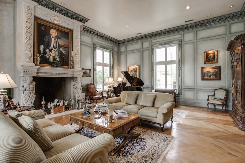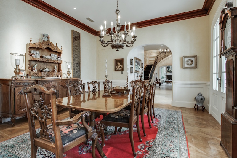 The entire property is priced at $2.6 million, which is a bargain considering its exquisiteness. Large chandeliers, beautiful works of art and antique furnishings are just some of the most noteworthy highlights of this stunning home. The different floors are connected by an interior staircase, which features wooden steps, a large carpet and wrought iron railings.