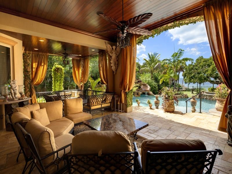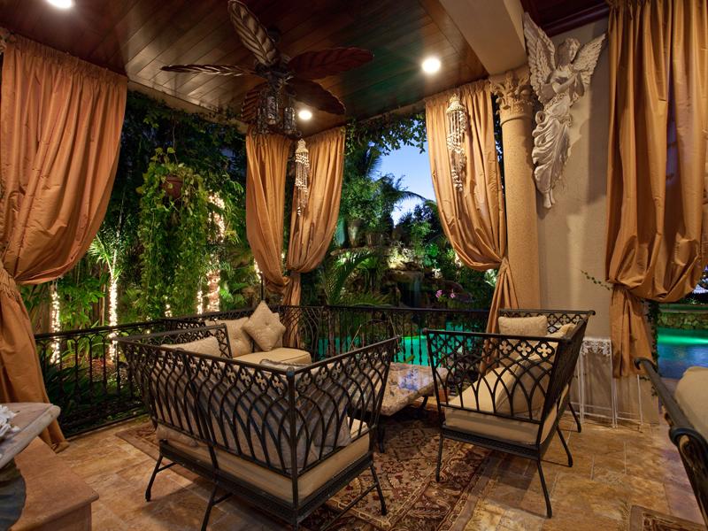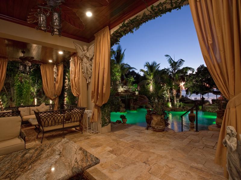 The outdoor area is absolutely spectacular due to the eight open porches and patios, a gorgeous rooftop garden/terrace, a bar area which can be accessed by elevator, an incredible swimming pool with waterfall, a cabana, a lounging area, a spa, a slide and a stage arranged for live entertainment.