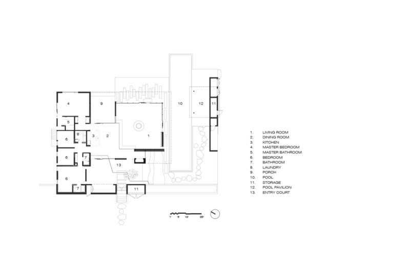 As comfortable and welcoming as it is on the inside, the highlights of the Seaside House come in the form of a series of courtyards that encircle it completely. Effectively separated, the different courtyards play key roles and involve parking facilities, a swimming pool and a covered porch that offers great opportunities for relaxation.