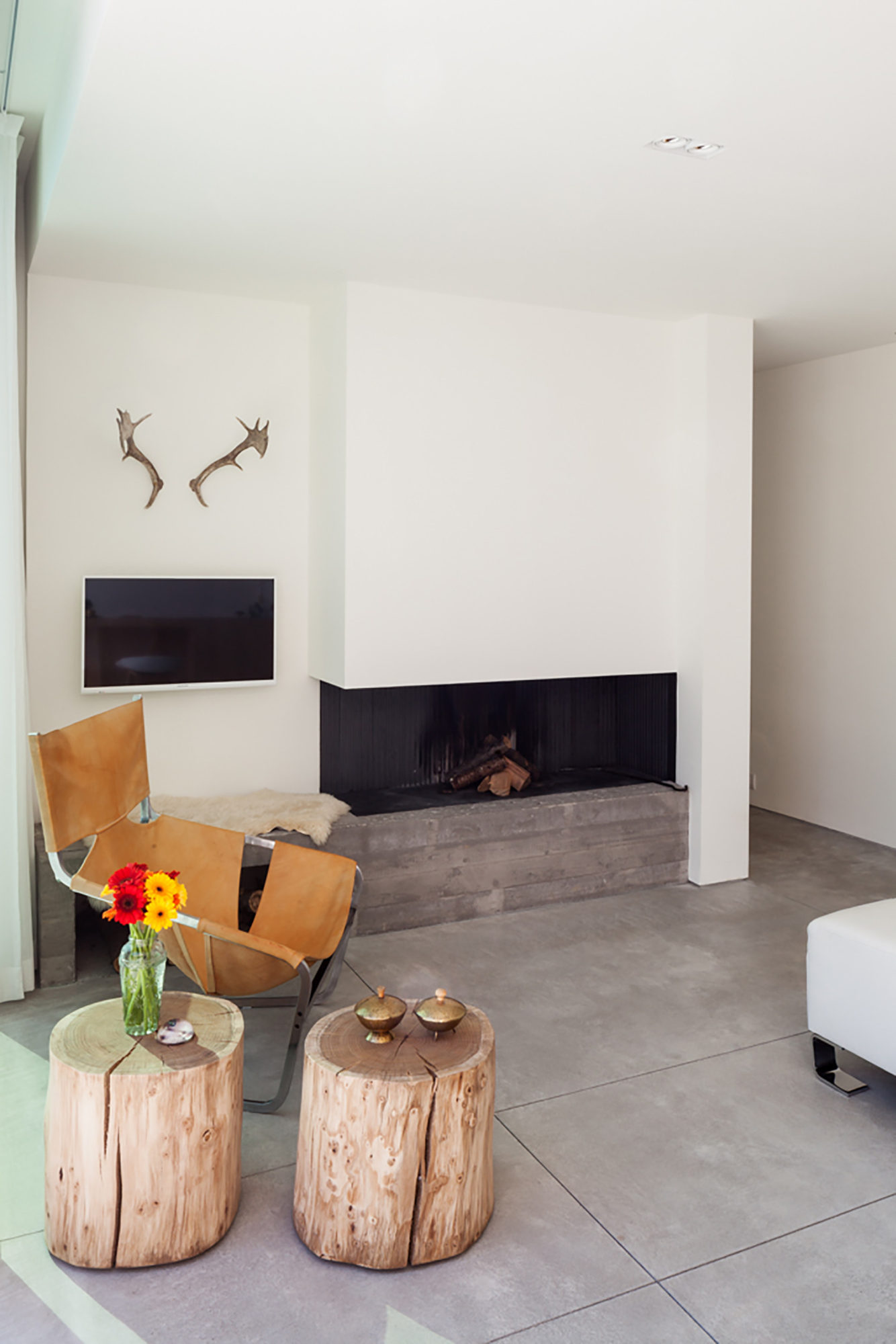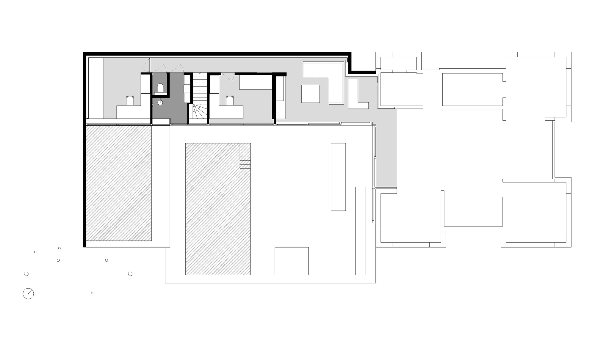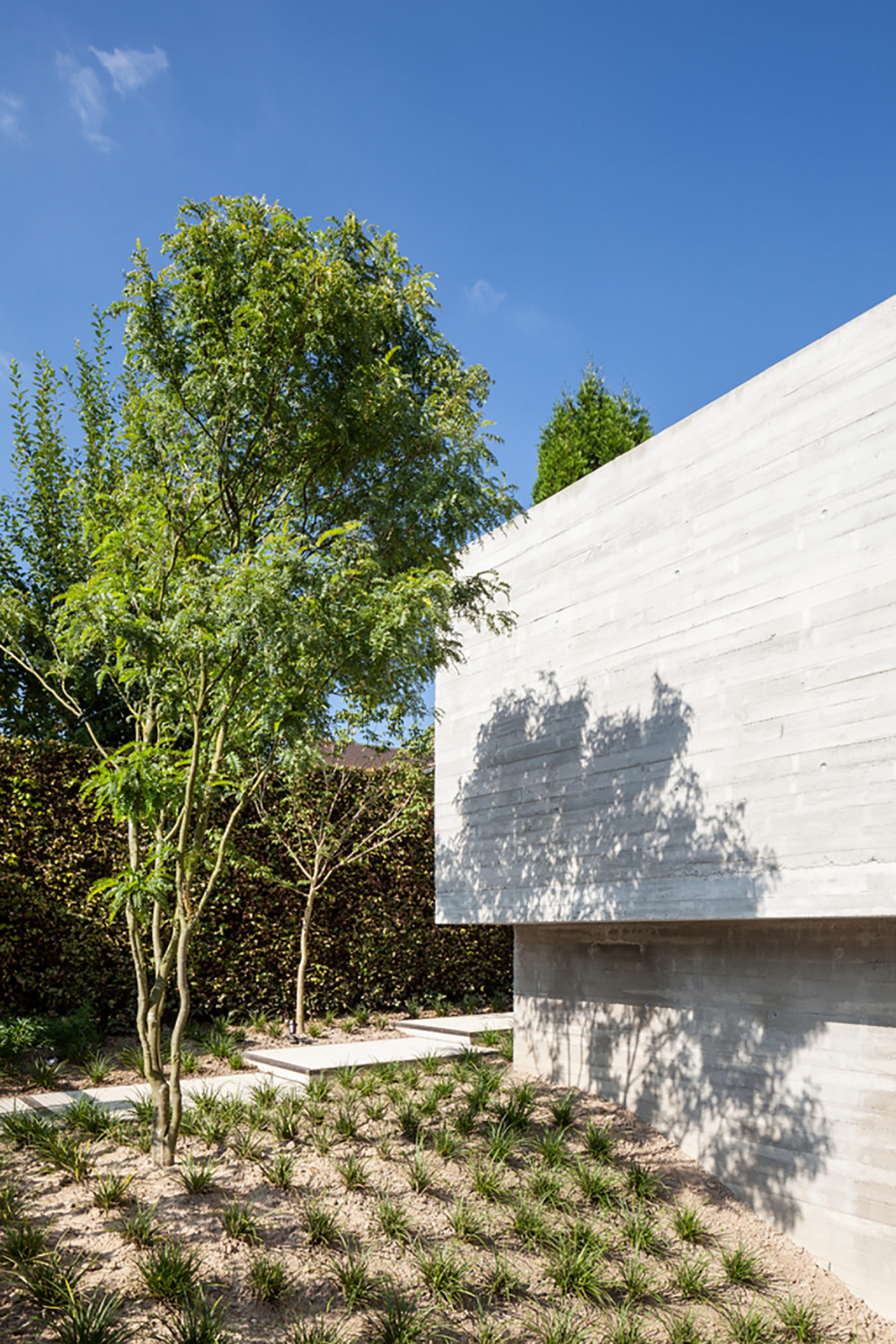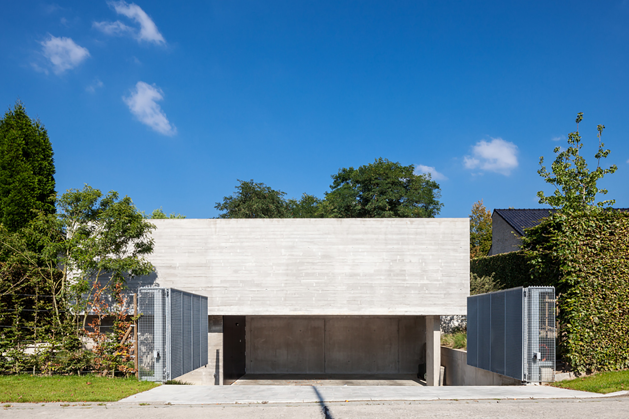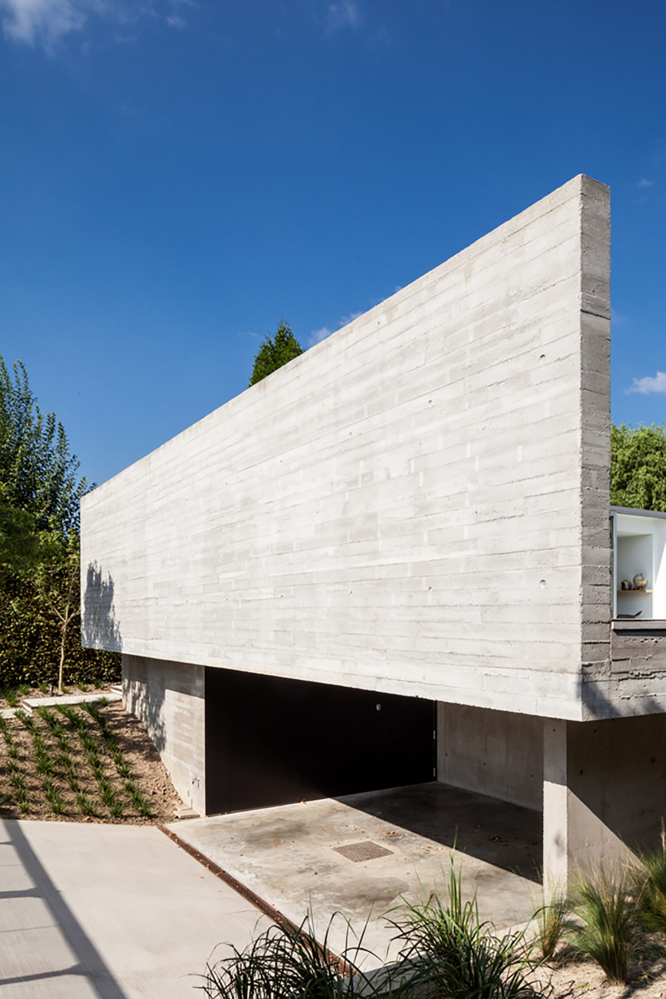 To improve the privacy regarding the neighbours we positioned a new courtyard with floating concrete walls.