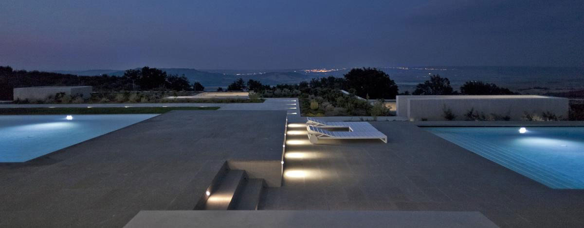 The use of materials such as concrete, stone and wood help creating a profile of Mediterranean house; the game of light and shadows characterize its architecture.