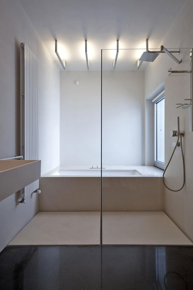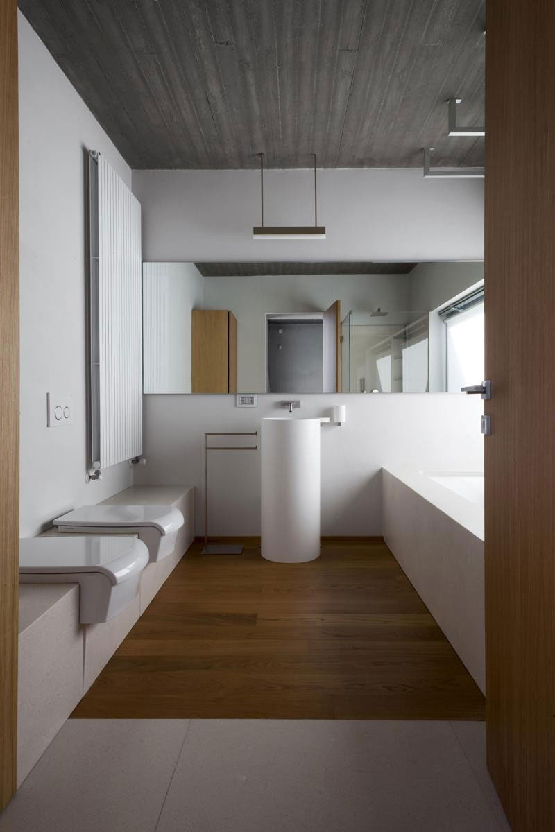 The strict geometries of the plant give rise to warm, inner domestic spaces; the volumes of services (bathrooms, storerooms, kitchen, laundry) define the rooms of the house that are arranged in succession along a linear path. All rooms enjoy a panoramic view over the lake below.