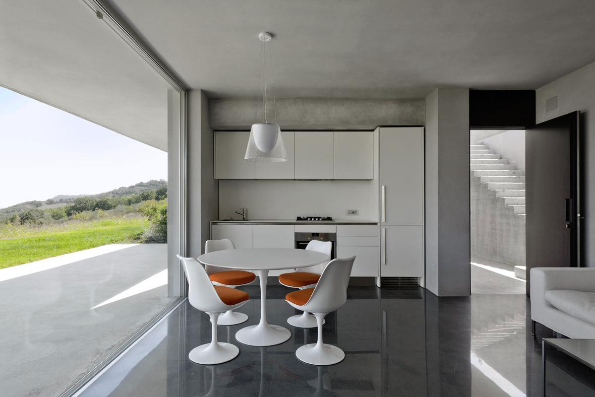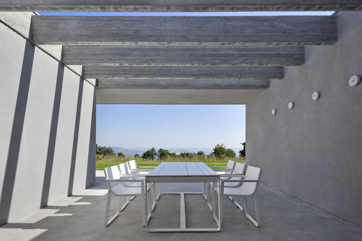 The quality of the context suggested the idea of preserving the orographic profile with volumes above ground following the natural contour of the slope, creating a timeless architecture in the rural landscape.