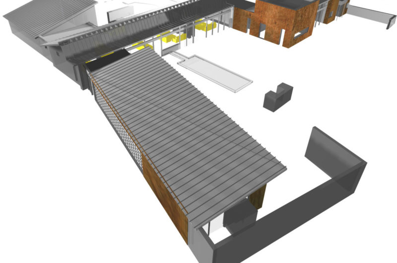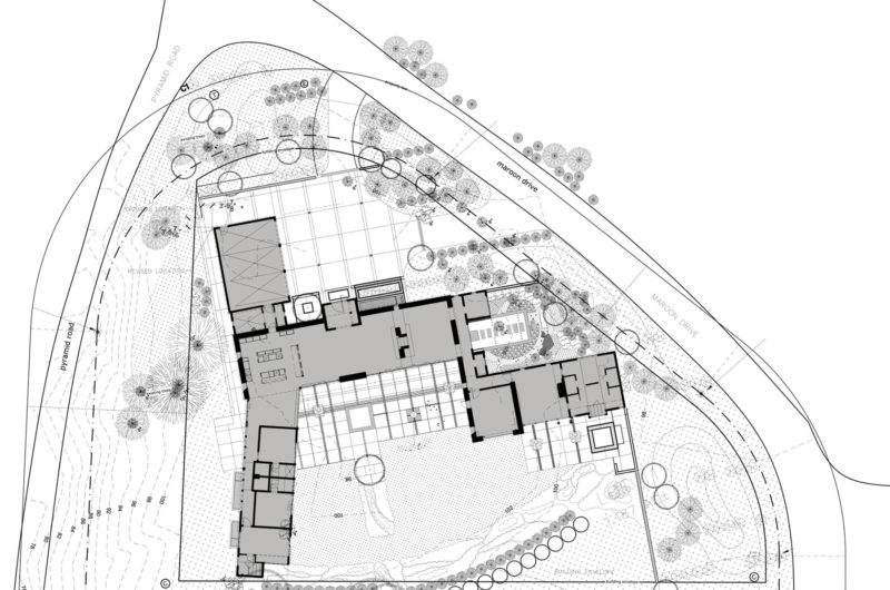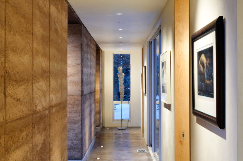 It’s a low profile home, allowing visitors to view it from every corner and features a thickened wall that acts as a barrier from highway noise.