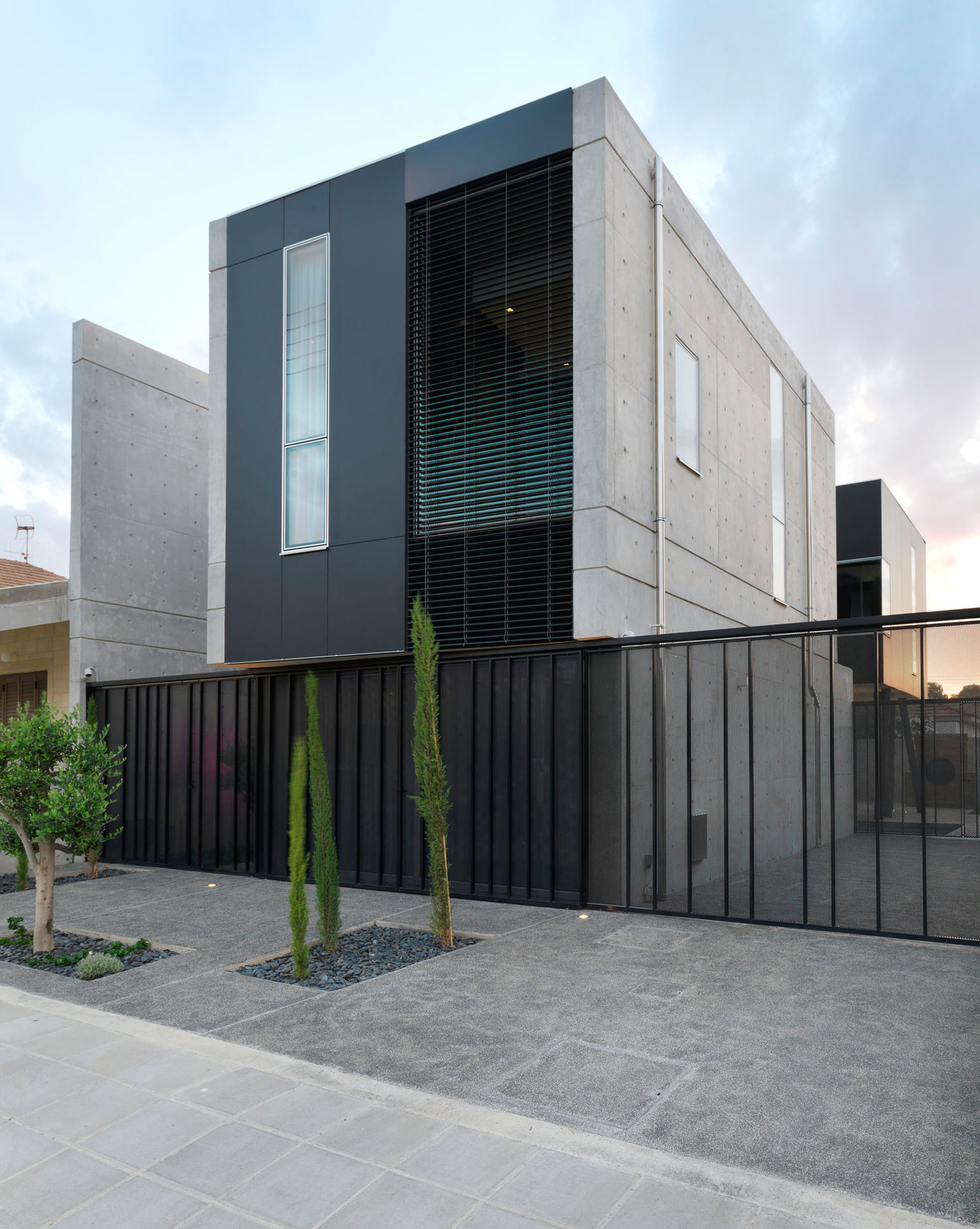 Built for a young family with a child in Nicosia, Cyprus, House 0605 is a contemporary residence by Simpraxis Architects. Being a half-plot project, it shares a wall with a neighboring house, but the architects managed to find a way to avoid the feeling of a crowded home in a too restrictive space.