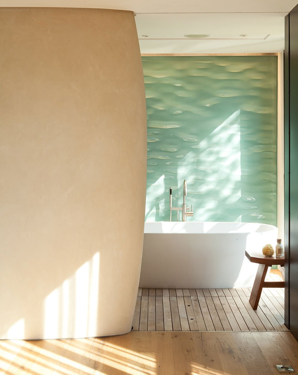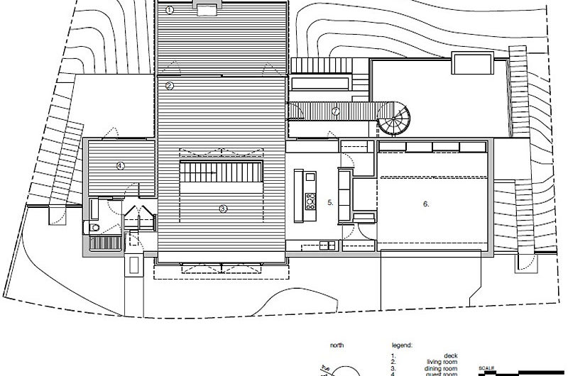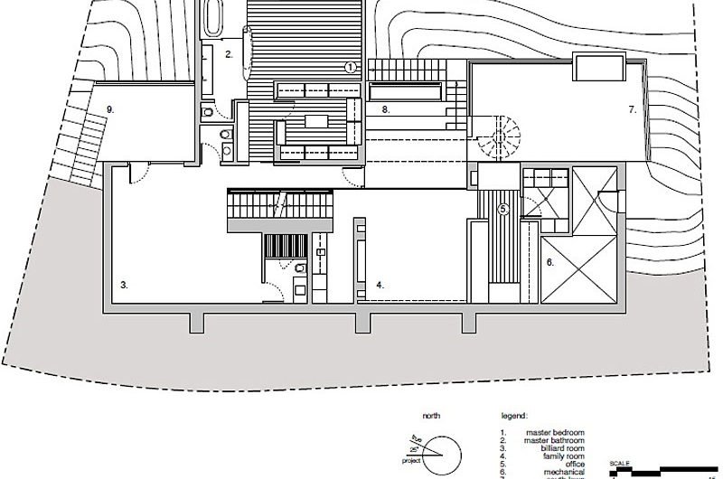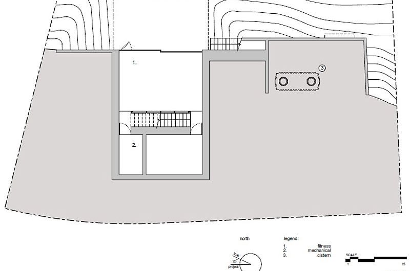 The house gets its name from the three trees on the site that attracted Kovac to the property. The project is organized and anchored to the site by a 23-foot tall concrete wall.
