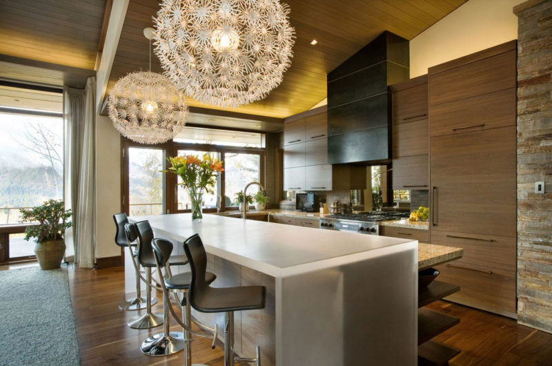 The natural light floods the interior because of the carefully placed windows while spacious entertaining areas are created by the open layout with doors that open completely to the waterfall and decks from the outside.