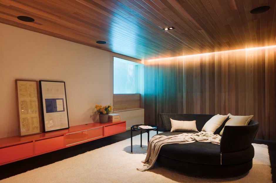 A basement cellar and retreat connected the outside via an expansive portal view into the pool and blue sky beyond.