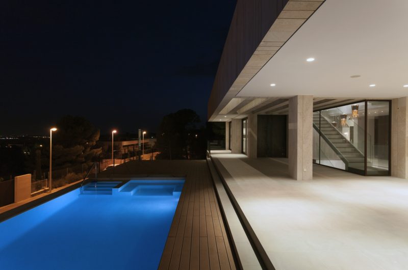 The Monasterios House is a complex project located in “Los Monasterios” residential area, in Valencia, Spain. It was completed in 2012 by Antonio Altarriba Comes. Situated in a high position, everything in the area can be viewed.
