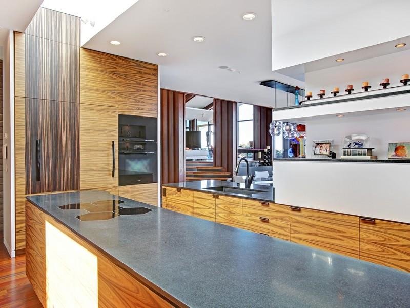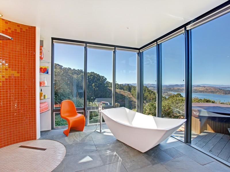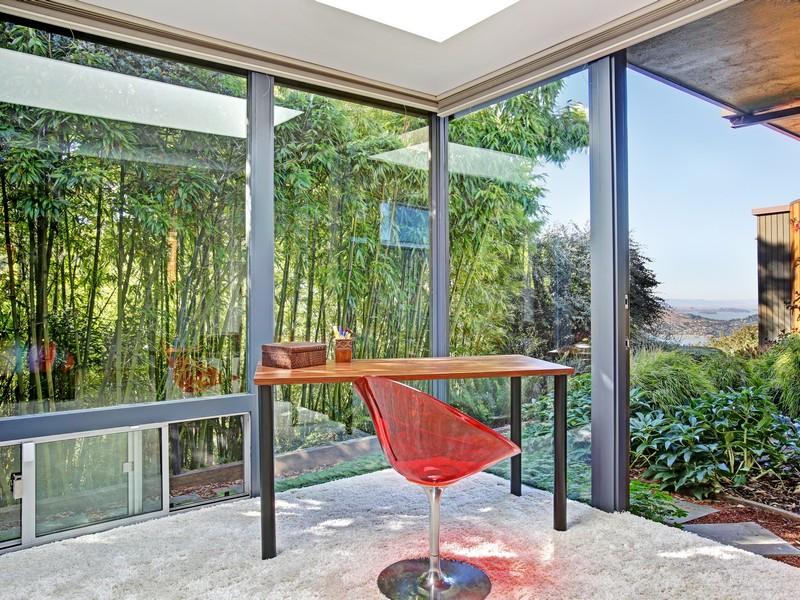 The dining area too affords superb vistas of Richardson Bay, as it opens to the outdoor patio. Transition from this space to the kitchen area is smooth, and this enhances the feeling of openness and freedom that this residence offers. The price for all this beauty is $5,380,000.