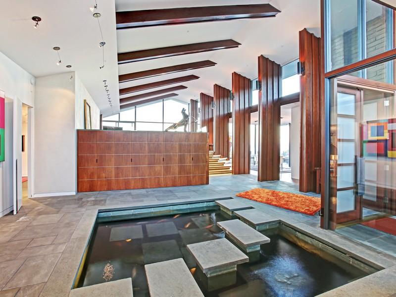 Some of its best new features include 9-zone hydronic heating system, dramatic glass walls, top-of-the-line kitchen appliances, modern fireplaces, and excellent living/entertaining outdoor space with glass fire pit, stainless steel barbeque, and inviting sitting area. The house has a total of 4,482 square feet of space, but it seems much bigger than that, thanks to a number of carefully chosen architectural and design elements.