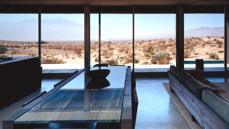 It is located on a five-acre site and it offers 2,000 square feet of indoor spaces, plus a lot of outdoor areas that easily blend into the landscape. The house was designed to provide unobstructed views of the nearby mountains, including the majestic San Jacinto peak. The transition between the inside and outside areas is seamless, with sheltered living spaces blurring the boundaries between the two. No luxury amenity is missing from this desert paradise. See for yourself in the picture below.