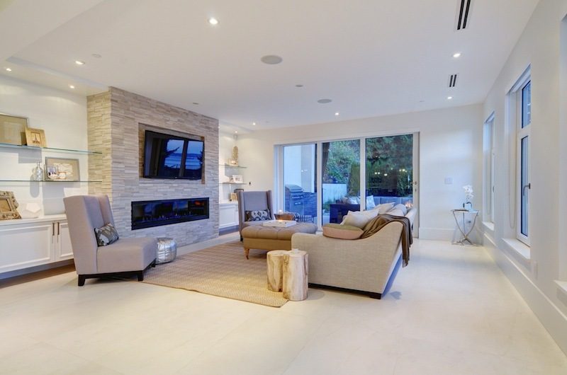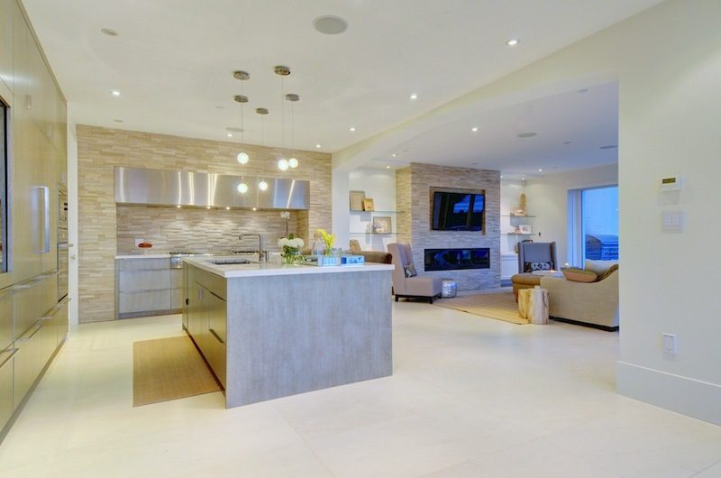 Due to the 12′ wide glass sliding door that makes the link with the large outdoor living area, the great room was transformed into a perfect place for entertaining and relaxation.