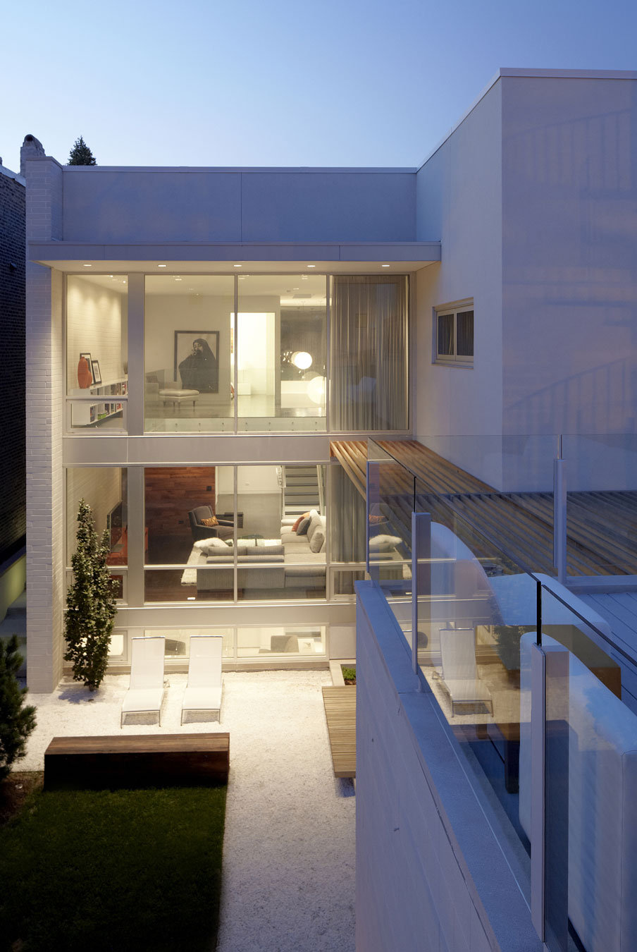 The Bucktown Three is a 5,000 square foot contemporary home completed in 2010 by the Chicago-based architectural firm Studio Dwell Architects. It is located in Chicago, Illinois, USA in a tight urban location.