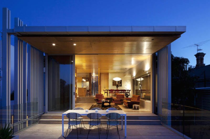 Bossley Architect’s have completed the Brown Vujcich House in 2009. The architectural piece is located in Herne Bay, Auckland, New Zealand, on a narrow urban site in the heart of Herne Bay. A moat of planting welcomes you from the entrance as you step onto the bridge. The entry space is shrouded in translucent glass and is protected by a vertical cedar screen.