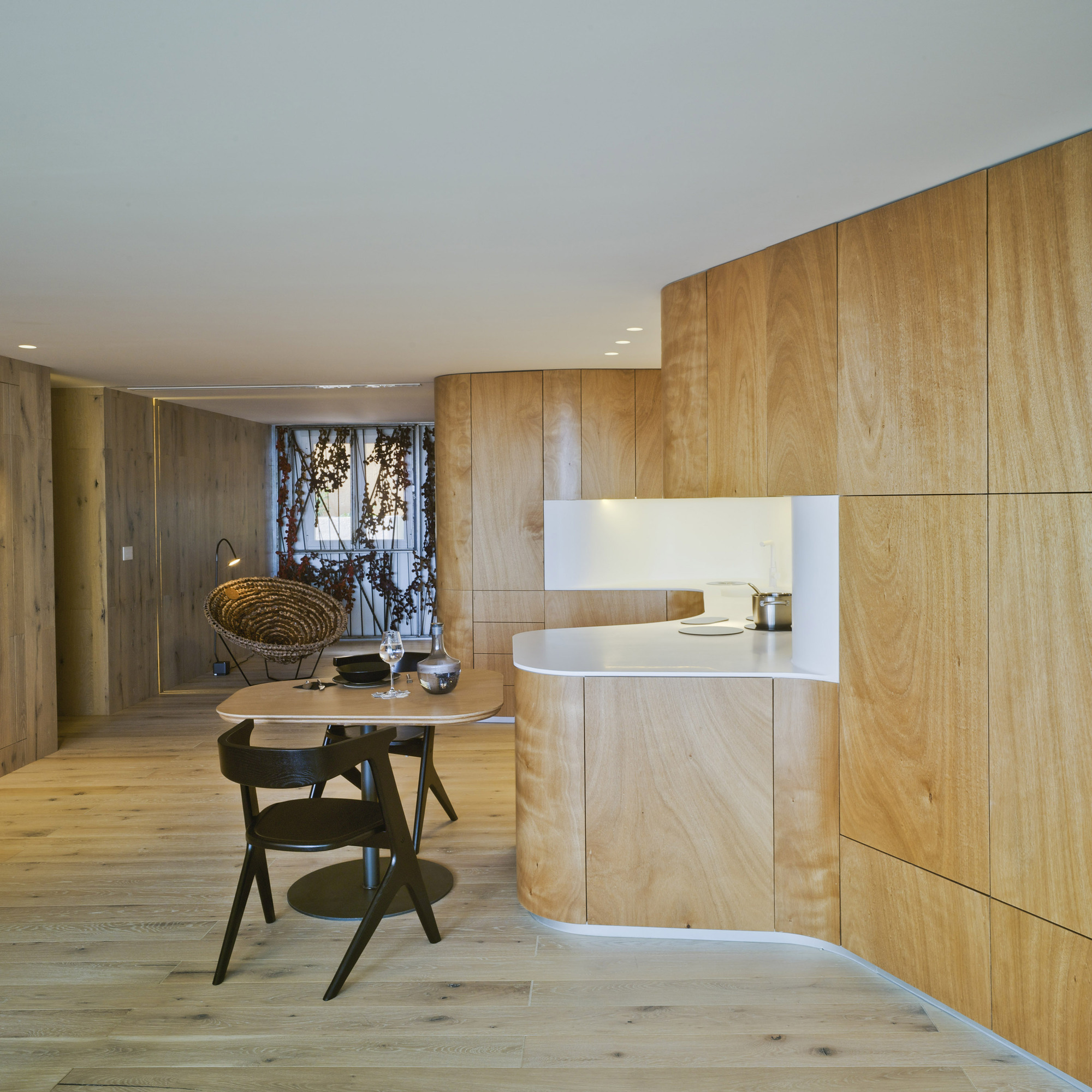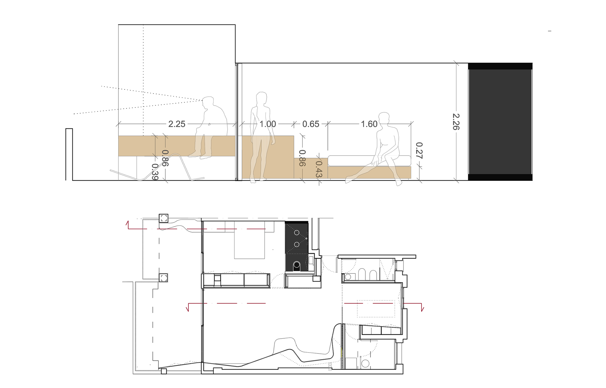 We strongly believe in the relevance of connecting the human body with the measures, the proportions, the materials… For us this relationship enhances the way in which people perceived their environment. Hence, psychological factors are a very important aspect to take keep in mind when designing architecture. For instance, the section of this flat has been designed by using as a ground the dimensions described in “Le Modulor” (Le Corbusier, 1948).
