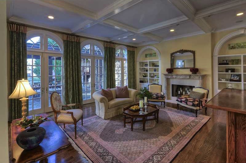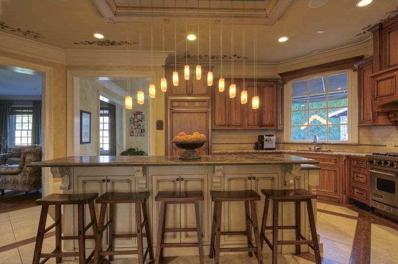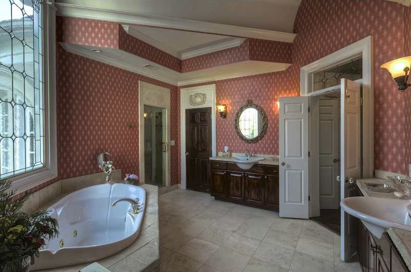 This amazing 11,024 sq. ft. property worth $3,200,000 features gated grounds, an infinity pool, multiple waterfalls, play area and a kitchen pavilion with a huge fireplace.
