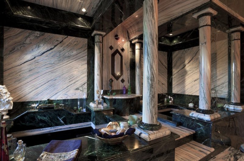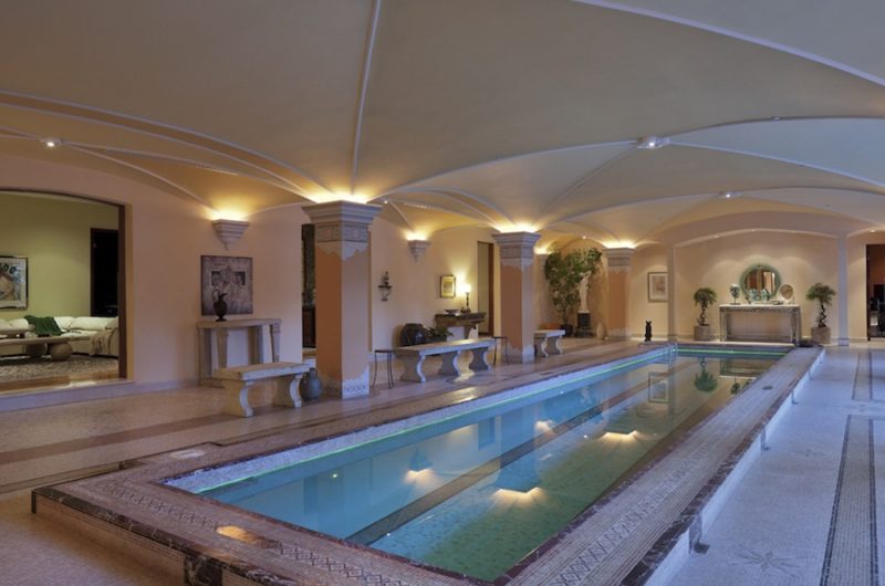 The 1993 house provides 27,816 square feet of living space for its lucky owners, who are able to benefit from the beauty and practicality of floor-to-ceiling windows, fireplaces, indoor swimming pools, and a nightclub. Accommodations include 4 spacious bedrooms and a spectacular master bedroom with his and hers bathrooms, high ceilings, a marble fireplace and a walk-in closet. In addition, the main level of the house features multiple family rooms where the owners could socialize and relax while their personal chef prepares a delicious meal in the fully equipped kitchen.