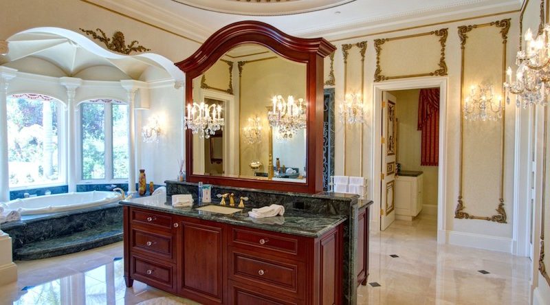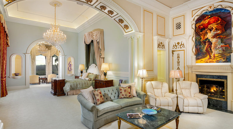 Moving on to the master suite, you’ll notice that this room boasts a stunning view retreat, a spa like master bath with his and her walk in closets, while across the hall are placed 3 spacious bedroom suites. Next, there’s his grand office with an elegant decor defined by wood paneling, ceiling details and an oversized fireplace.