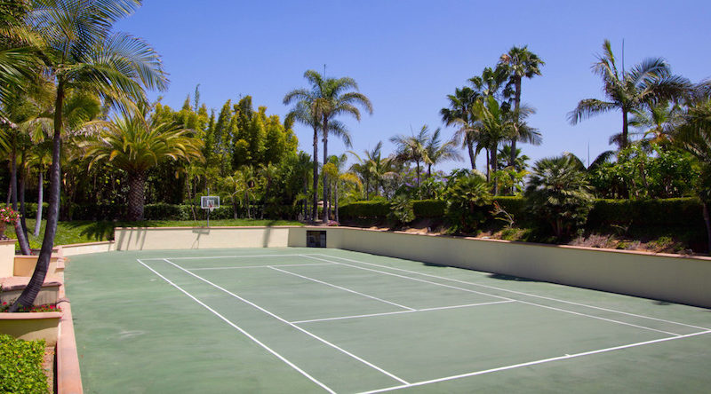 The estate also includes two additional guest bedrooms, a 4 car garage and additional detached 4 car garage for a total of 8 cars, plus a resort tennis court sunken into the ground.