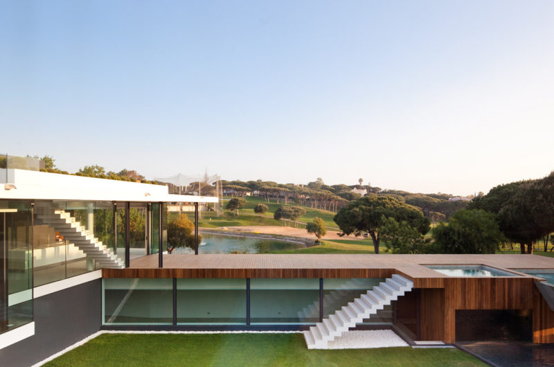 This Arqui+ Arquitectura project is set in Vale Do Lobo, Algarve, Portugal. It spans over a 6,450-sq-ft property and includes a state-of-the-art cantilevered infinity pool.