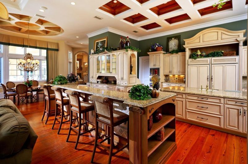 Everything in this house is at the highest standards of quality, from the materials to the elegant lines. The attention to details is specific French and what you’ll find will make you fall in love only with the idea of owning this home. Just think about it: stunning details, travertine, pine and mosaic tile floors, picky cypress ceiling beams and fabric-paneled walls.