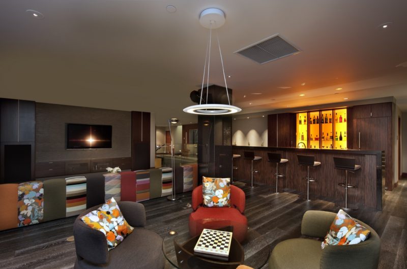 The residence earned quite a few awards since its completion, such as the 2011 Tommie Gold Award for Home Of The Year, the 2011 Tommie Award for Excellence in Master Suite Design, and the 2013 Pinnacle Award for Luxury Pool Design. Its most noteworthy design element is a 40-foot tall foyer that boasts stucco and brick walls as well as a staircase with glass railings and ab outrigger canoe that acts as a centerpiece. The canoe is illuminated naturally by a skylight, while the upper terrace directly above features a shallow reflecting pool. Moreover, the main patio comprises a 20,000-gallon infinity swimming pool, and it is connected to an open living space that comprises the kitchen, living room and dining area.