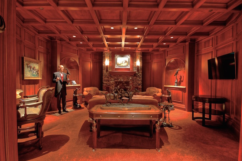 The master bedroom is a sumptuous 3.225 square-foot masterpiece that is unmatched as far as lavishes and comfort are concerned. The grand room flaunts 3.200 square feet and is linked to a commercial elevator for 25 people. The family room is considerably smaller with its 1.750 square feet of space, but it is still very impressive in its own right. Other highlights comprise a library, a lounge, a bar, an exercise room, an indoor shooting range with two lanes and a theater.