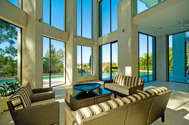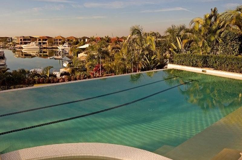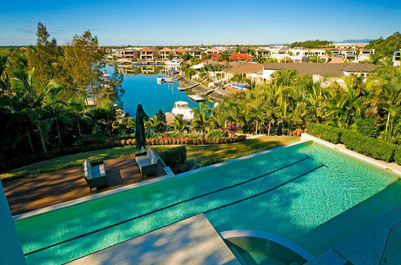 The Waterfront Home located in Sanctuary Cove, a gated community from Australia, somewhere on a hilltop which offers an extraordinary view over the water and the multitude of anchored yachts. We can say that’s one wealthy sight. And this is not all because this contemporary home was designed to fit perfectly into the picture, being framed as a precious piece of art which features 5 bedrooms, 7 bathrooms, a gymnasium, a sauna, an office area, a media room and a controlled wine cellar. If we would have to take a guess of how much is worth, we would say not cheap at all. The house was recently sold by Ray White Surfer Paradise at a confidential price but our intuition tells us that it was a very high one, and with good reason. Reuniting modernism with classicism, finesse with luxury, small details with grandiosity, it’s not hard to guess the profile of the owner: very rich and stylish.