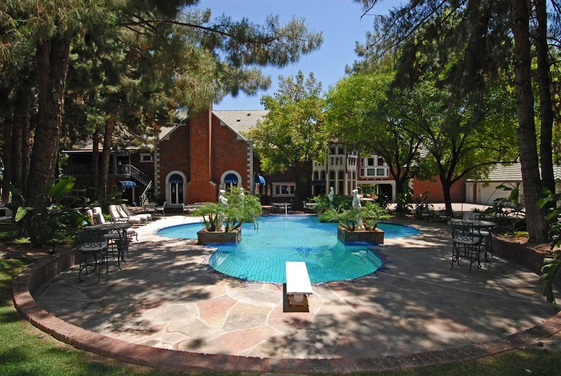 Built in 1984, the mansion has some really stunning features, including a huge 22-persone home theater, massive 25-car garage, fully-equipped gym, workout room, and English pub. It is currently for sale at $9,995,000.