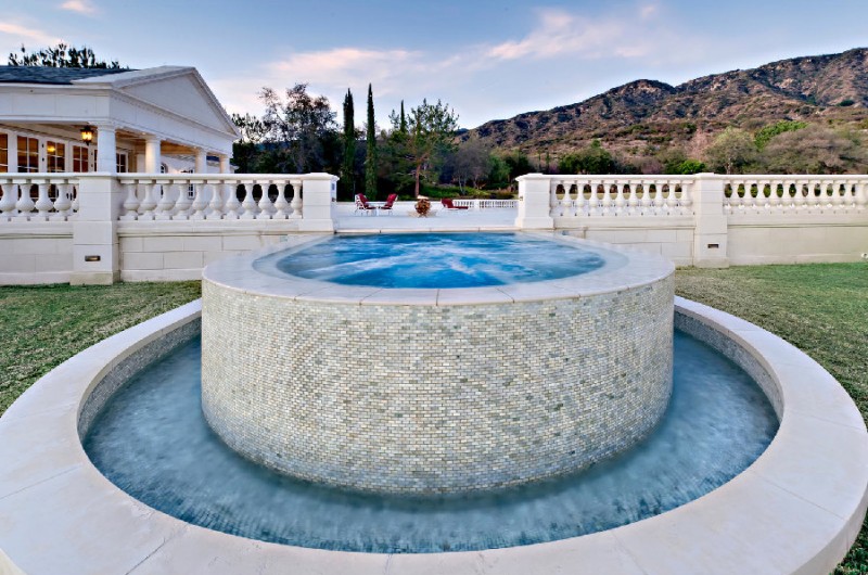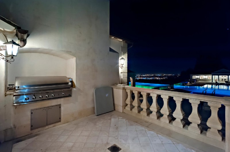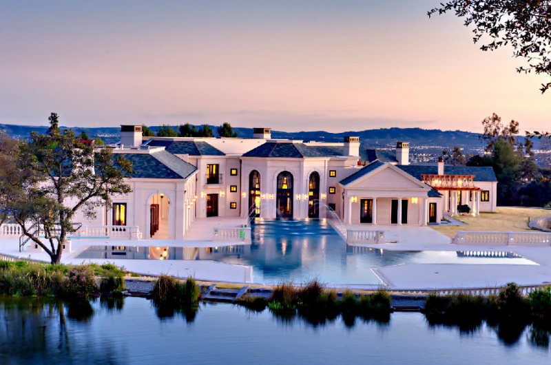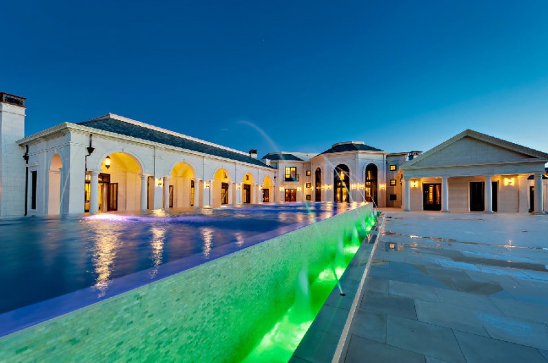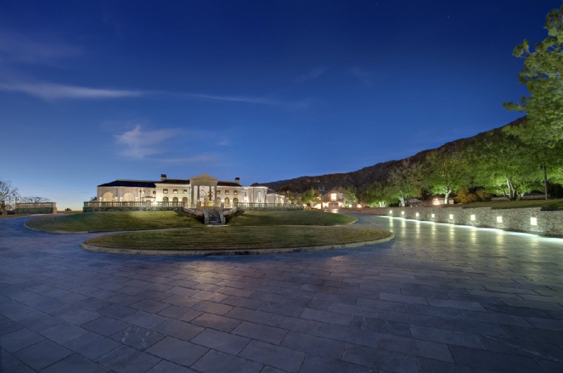 Set on an 8-acre property, the residence has five bedrooms, ten bathrooms, and a very impressive lit of amenities. These include a ten-car garage, a poker lounge, an oak-paneled elevator, a 3D theater, a 15-person Jacuzzi, an infinity pool, and a 2,000-bottle wine cellar. Also on the property one can admire the temperature-controlled trout pond with a spectacular two-story waterfall, and the generous 600-foot entry drive.