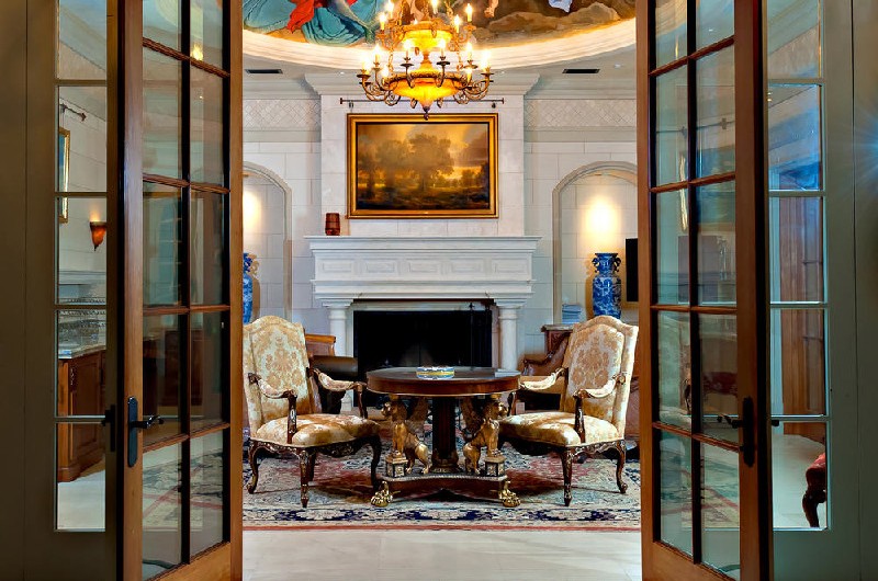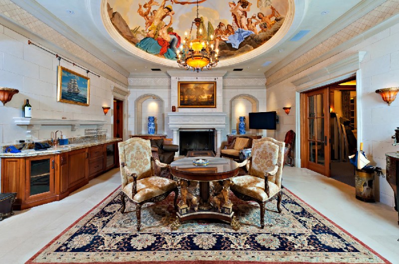 For a plus of grandeur, the mansion boasts 40-foot ceilings, Venetian plaster, domes with hand painted frescos, and six inviting fireplaces. The exterior is finished in French limestone. The estate also includes a Firing Range, a Pool House, and a Guesthouse. All this opulence comes with a hefty price tag: $78,800,000.