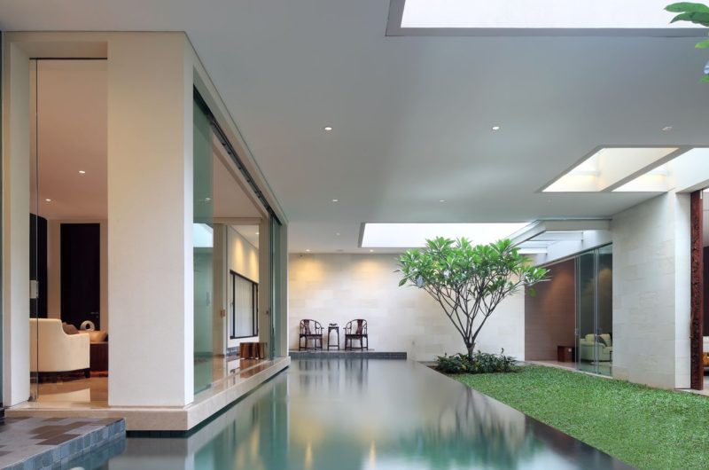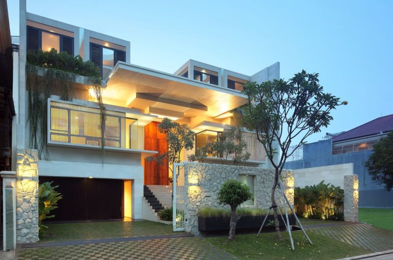 The exquisite Static House by TWS & Partners is a 7,530 square foot contemporary residence located in Jakarta, Indonesia. It’s an architectural miracle which combines two courtyard spaces, one raised on ground floor and the other at the second floor, both designed to capture as much natural light in the house. The swimming pool, located on the first courtyard is meant to act as a daylight reflector to this outdoor space.
