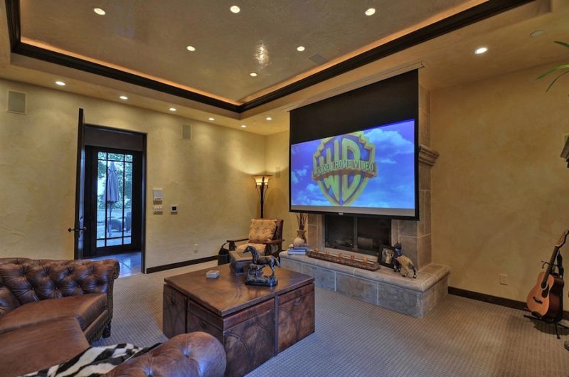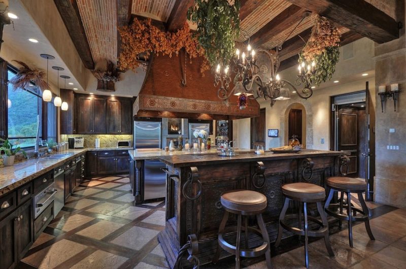 Among other amenities, there are a conveniently placed library, an oversized stone masonry fireplace with gas starter, rich stained railroad tie hardwood floors imported from South America, a spacious family room, various oversized French doors, custom chandeliers and a custom 100-year old barn wood beam ceilings, which create a fantastic ambience in the dining room.
