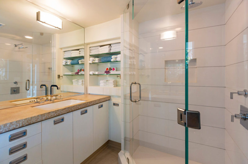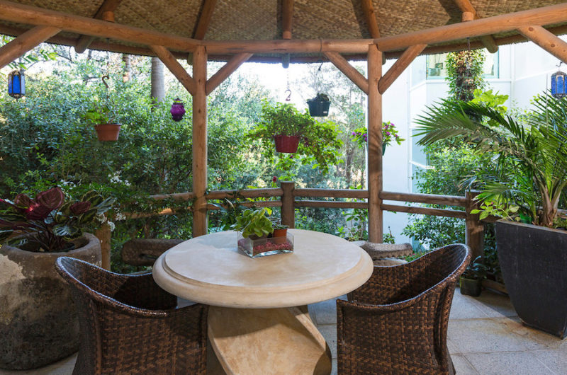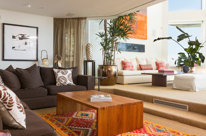 Sketched out by Steven Ehrlich and renovated by Interior Designer Michael Lee, this stunning residence flaunts 4 bathrooms and 4 bedrooms that occupy a part of its 6,445 square feet of total living space. Moreover, some areas of the abode feature glass walls that ensure unparalleled views of the surrounding environment. Other highlights include bamboo floors, a wine room, a library, a garage for 2 cars, an elevator and a fully equipped kitchen that boasts Gaggneau appliances.