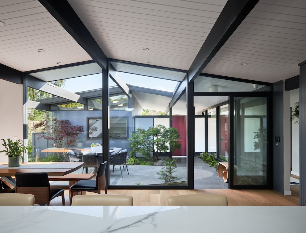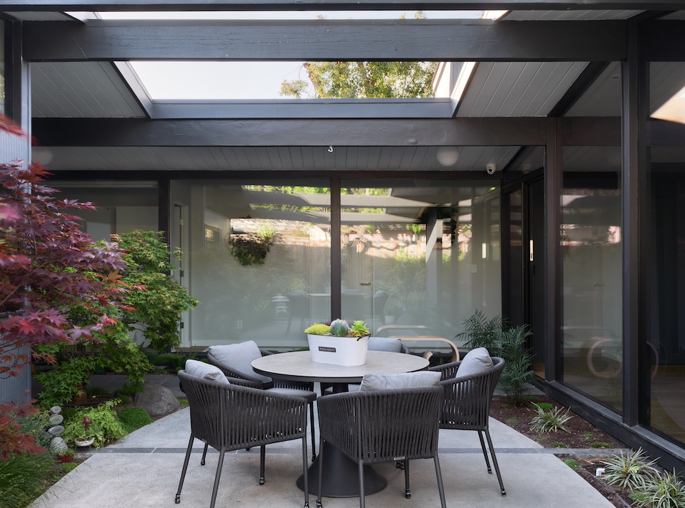 The renovation was completed with a fresh landscaping design that reflects the client’s heritage while paying homage to the architectural elements of the home. The end result is a harmonious blend of indoor and outdoor living, perfectly tailored to meet the needs of this growing family while staying true to the original Eichler aesthetic.