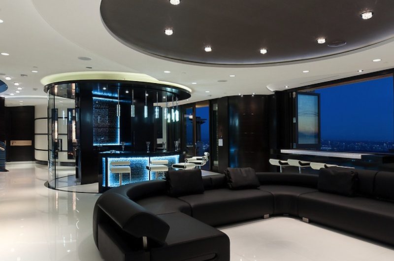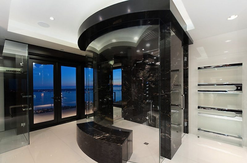 The master suite is one of the most opulent areas of the house, flaunting high-end furnishings, Swarovski lighting fixtures, huge private dressing room, and an amazing private bathroom with soaker tub and a stunning 5-head curved glass steam shower. In all, the residence has 6 bedrooms, 8.5 bathrooms, and a total of 9,549 square feet of lavish spaces. The price for this beauty is $22,000,000.