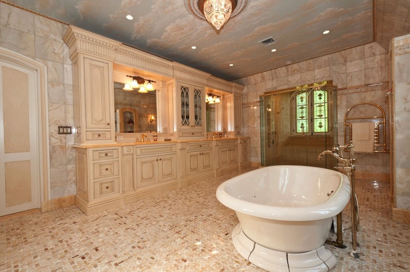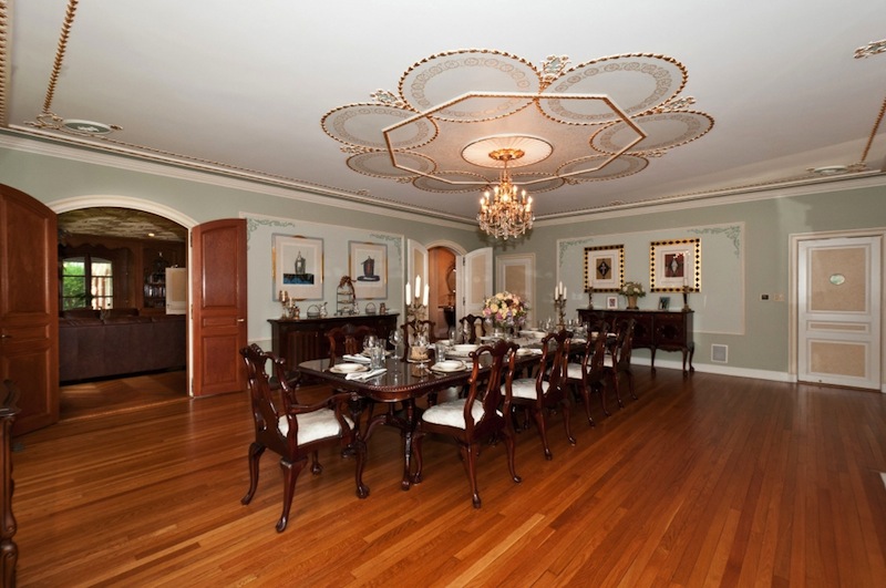 Designed by Bradley Delehanty, built in 1929, and fully restored, this 9,000-square-foot residence is part of the historical Thornwood estate in Muttontown, New York. Now the lavish chateau flaunts 18-karat gold leaf decorations, medallion ceilings, hand-painted plaster moldings, and marble & herringbone wood floor.