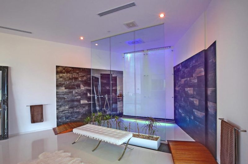 Its alluring modern architecture is based on an extensive use of stainless steel and glass. Generously opened towards the superb views, the residence is filled with luxe amenities, such as custom furnishings and fixtures, a media room with aquarium-style pool, and state-of-the-art touch technologies. Its price is $10,950,000.