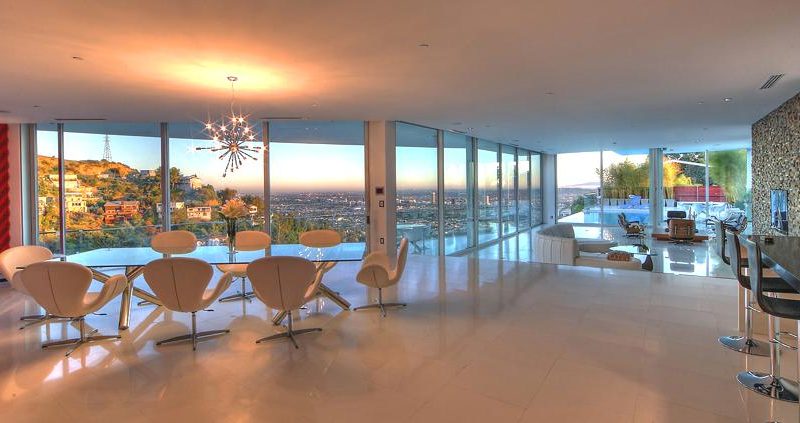 Located in Hollywood Hills, a high-end exclusive neighborhood in Los Angeles, California, this amazing luxury home is currently looking for a new owner. It flaunts sophisticated interiors and museum-like walls that are ideal for displaying art. It has six bedrooms, eight baths, and a superb open plan living-dining-kitchen area.