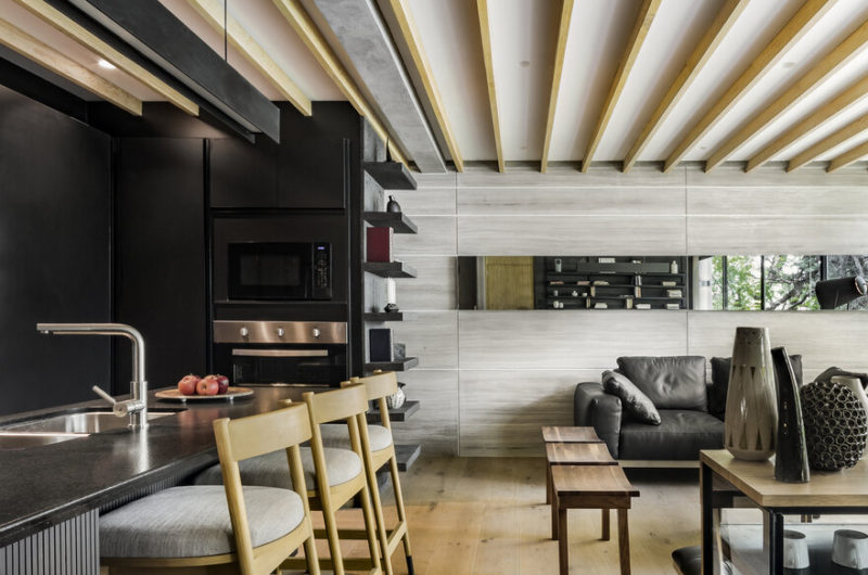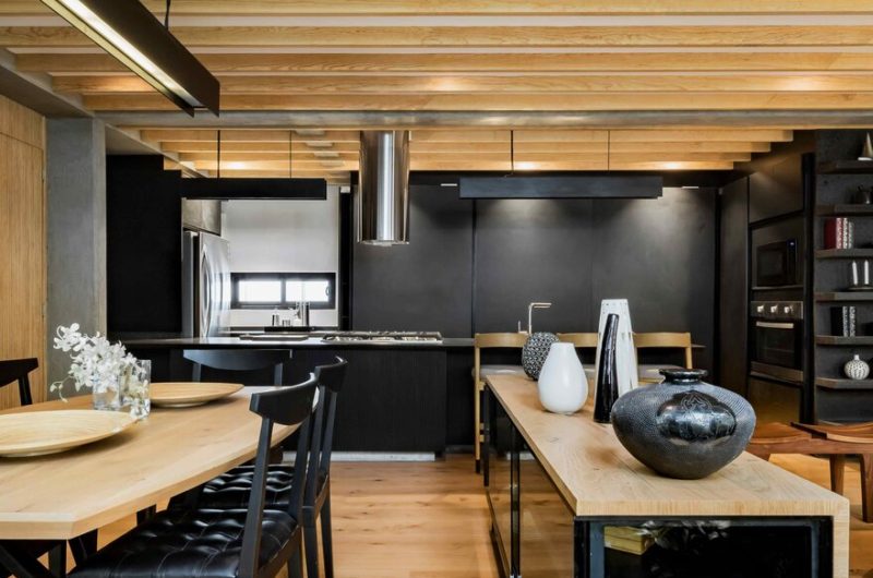 Architect Taller David Dana did an amazing job of creating this ultra-modern look. You can see the elaborated use of black, white, and pinewood in the entire house. Also, sticking to fewer colours and textures can sometimes end up looking very two-dimensional. But the pragmatic use of windows and bespoke furniture gives depth to the rooms in this penthouse of Magdalena.