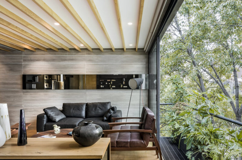 Every room is adorned with massive windows to bring adequate sunlight. It makes the walls appear as permeable allowing the homogeneous look. It almost feels like having the lush green garden inside! Moreover, the use of light wood finish brings a true sense of Mexican culture. Ceilings are decorated with wooden panels which makes the rooms look elongated. It visually plays with aesthetics and provides a chic vibe.