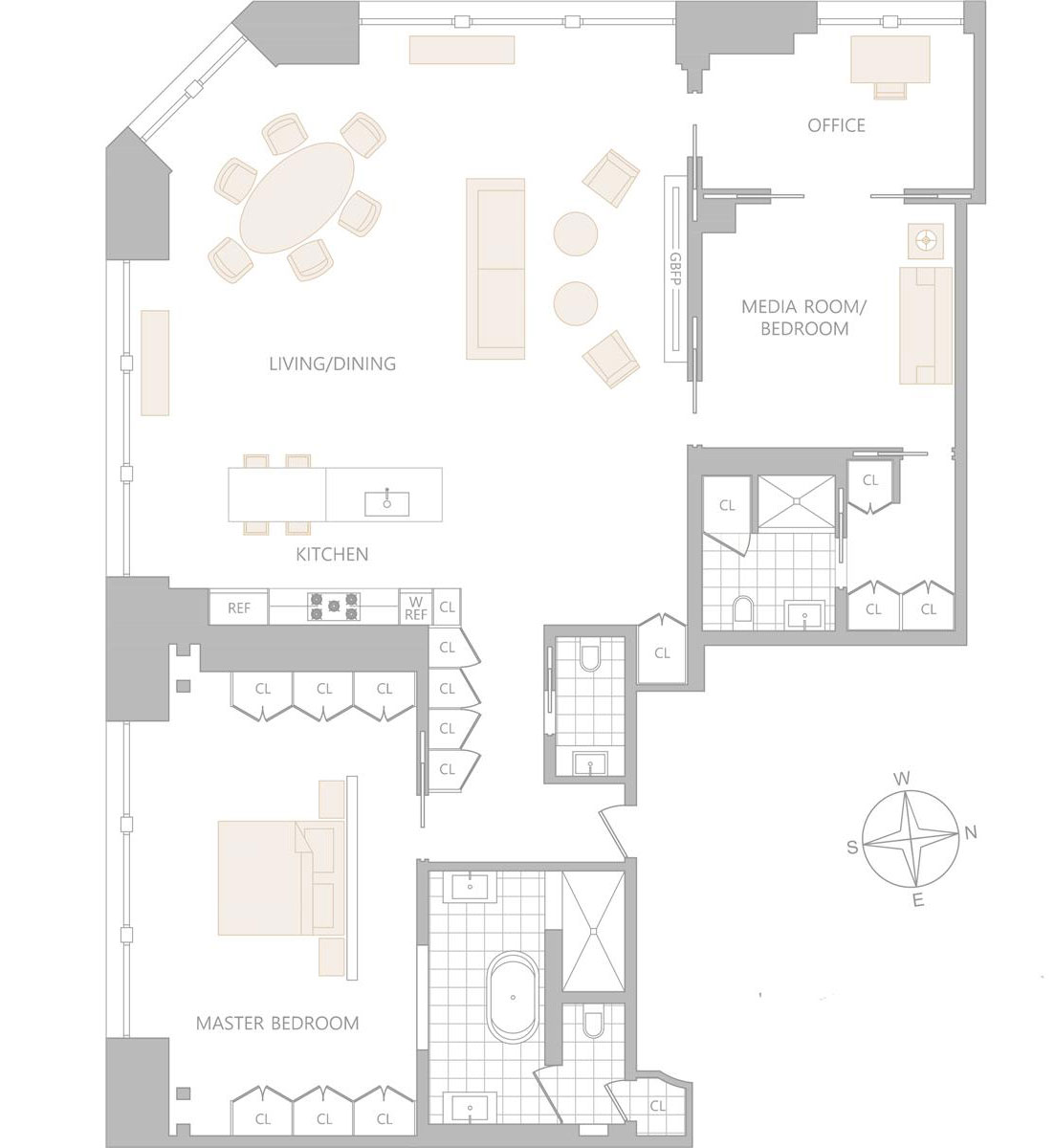 Speaking of the kitchen, we should tell you that it is equipped with high-end Gaggneau appliances and Italian Poliform cabinetry. The master bedroom comes with custom twin closets that extend from the floor to the ceiling, not to mention the en-suite bathroom with its radiant floor heating, large shower, separate dual vanities and large soaking tub.