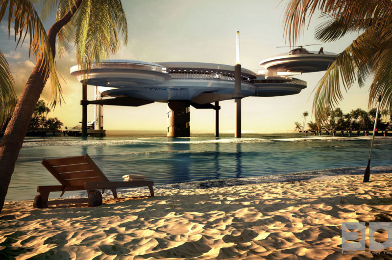 With two main discs – one underwater and one hovering above the ocean – this is a 21-room hotel that can offer both breathtaking views of the horizon, and mesmerizing sights of the colorful sea life. Surprisingly close to the local fauna and flora, the hotel is designed to have a minimal impact on the environment. And for whenever living 10 meters (approx. 33 feet) underwater gets too much, guests can just go up to the other discuses and enjoy the perfect weather of Dubai.
