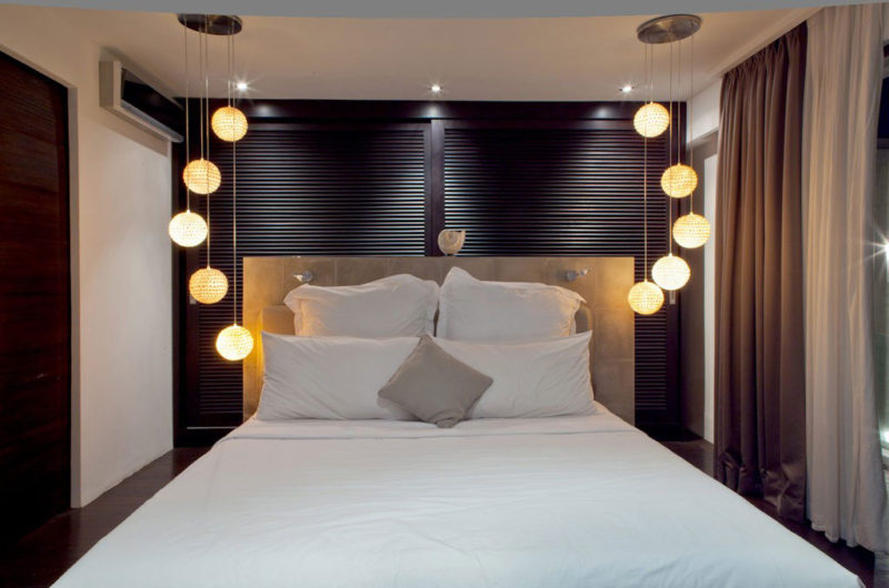 The various bedrooms including the master bedroom upstairs can be accessed by a sculptures staircase beyond the pool.