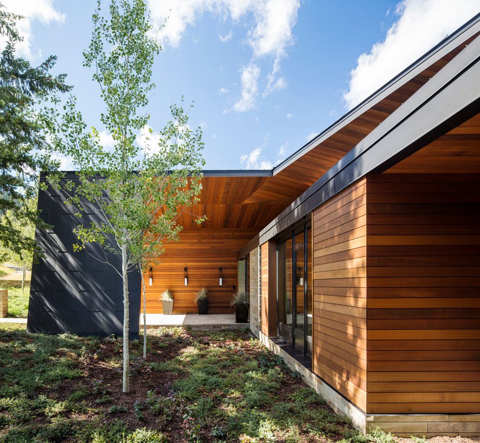 Gently curving roof forms separately capture public and private functions within the residential program. Springing from and returning to the topography of the site, the roof profile mimics the soft shape of the butte and creates a series of protective canopies that provide shelter in the harsh western landscape.