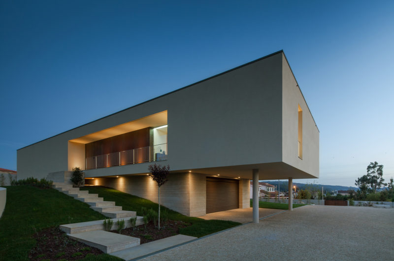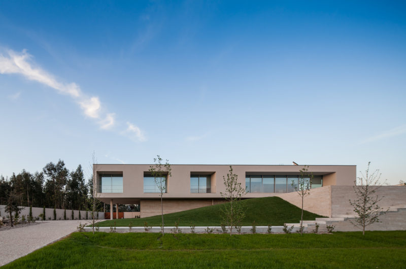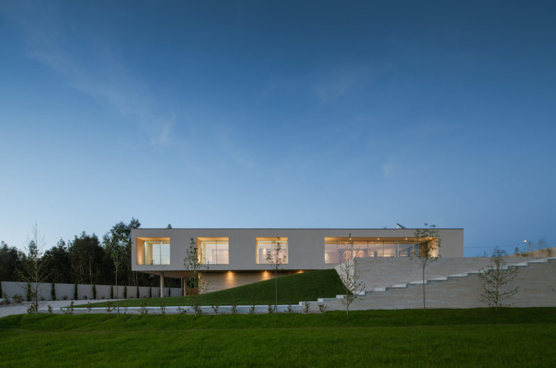 Pieres House was designed by Graciana Oliveira and was built in 2012 in Penafiel, Portugal. It boasts 4,628 square feet of living space and sits on the highest point of its lot in order to benefit from the best views of its surroundings. Even though it was built on an irregular site, the residence flaunts a perfect rectangular design that gives off a feeling of modernism.