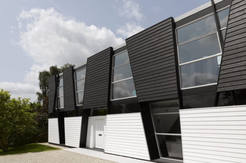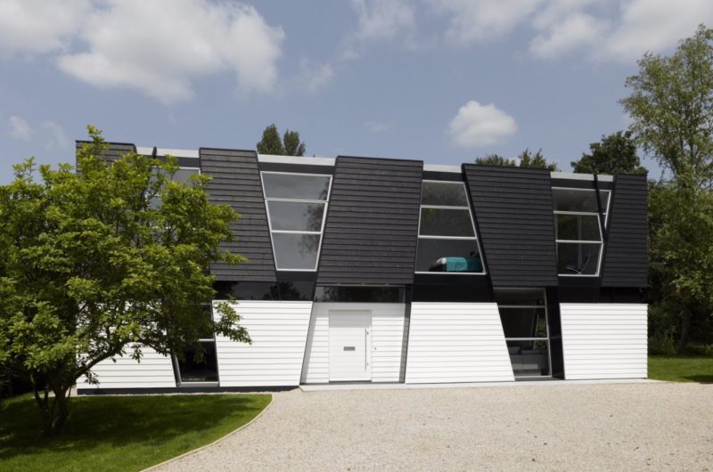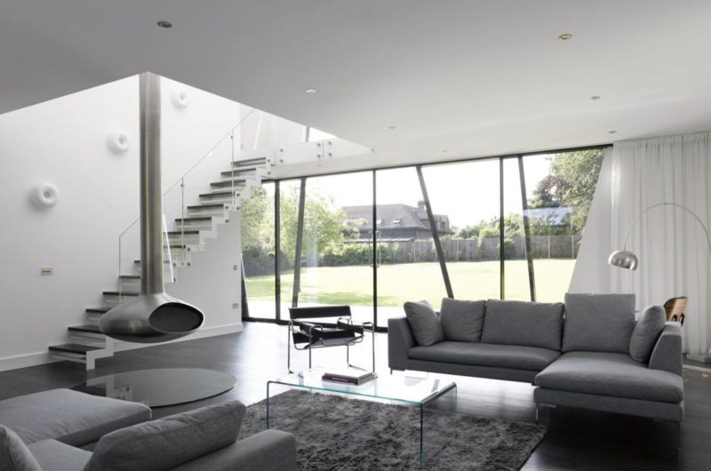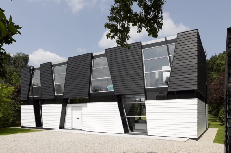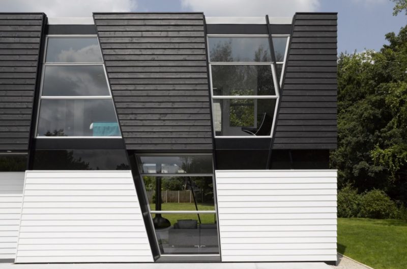 To make a beautiful contrast with the surrounding nature, the home features geometric forms and lines in order to create a dialogue between the organic woodland and the modern dwelling.