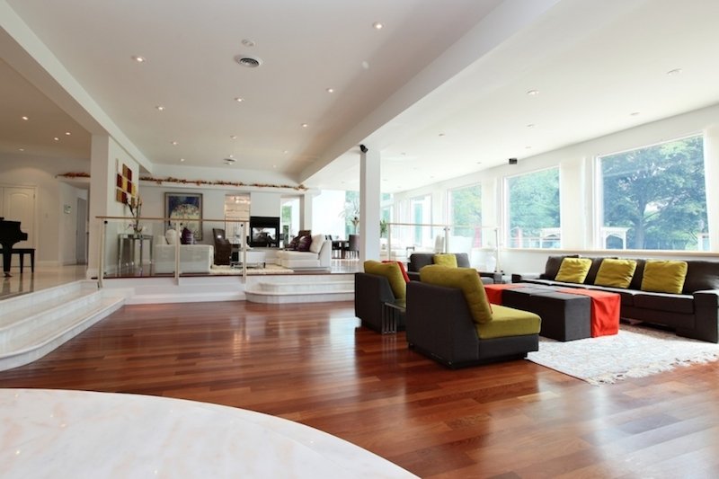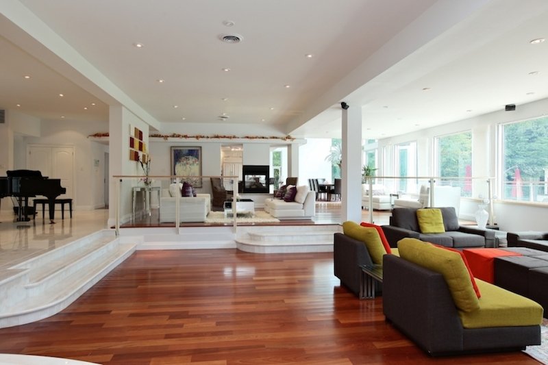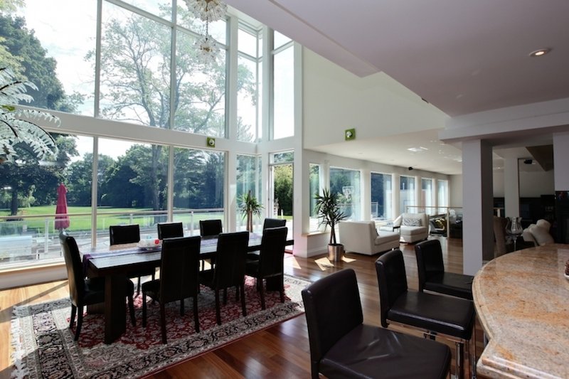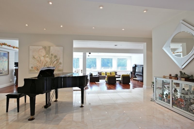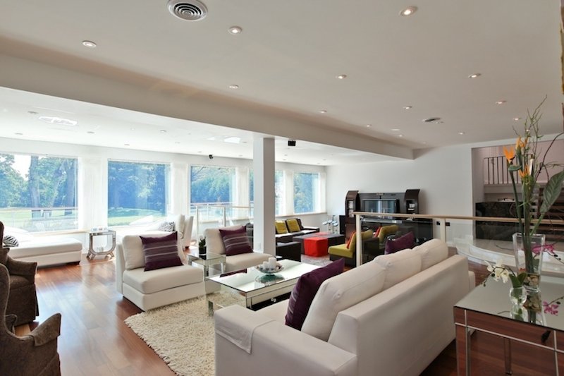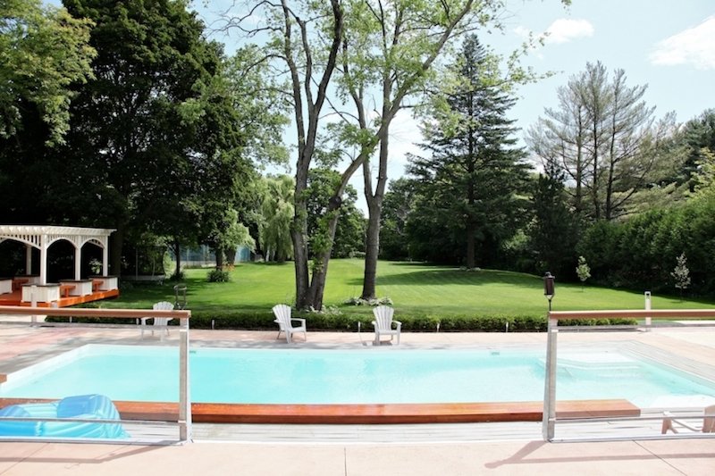 Spread across 3.95 acres, the Bridle Path Estate boasts its own Par-3 golf course and large swimming pool, while the residence itself amazes at a glance with its glass walls, soaring ceilings, gourmet kitchen and ample accommodation options. Housing arrangements include 6 bedrooms and 7 bathrooms complemented by spacious living areas that are packed with high-end amenities, splendid décor elements and superb furnishings. Some of the most impressive amenities found within the Bridle Path residence involve a grand piano, a pool table, a ping-pong table, a dining table for 8, fireplaces and flat screen TVs.