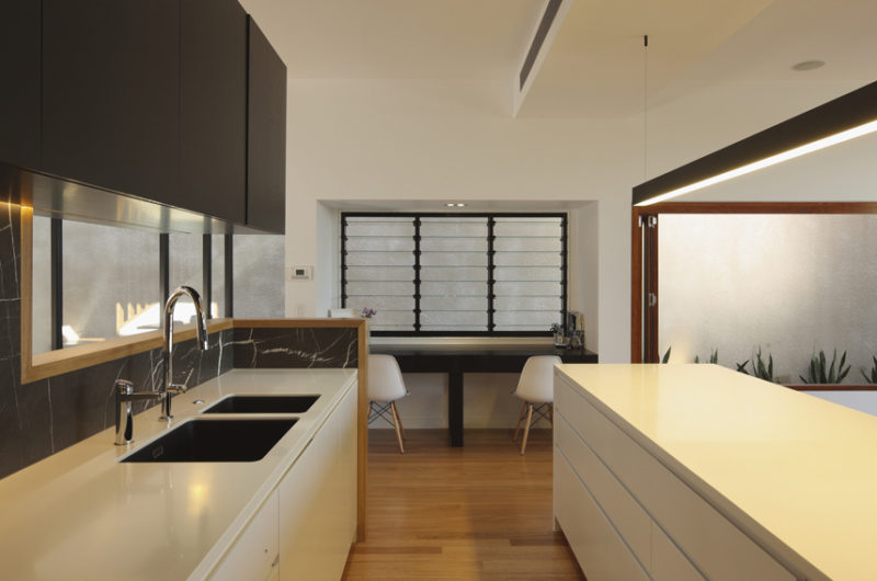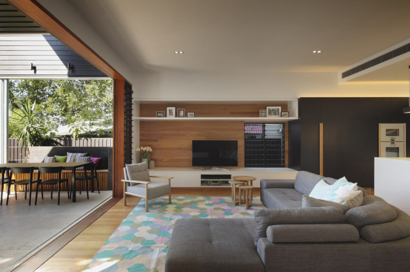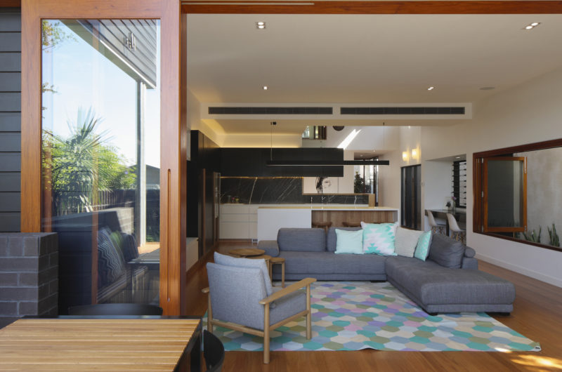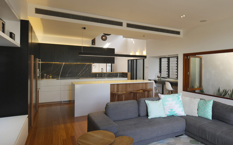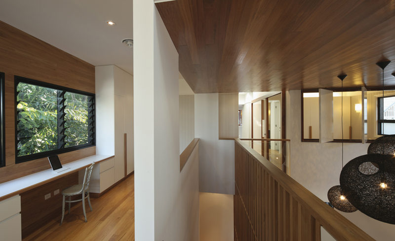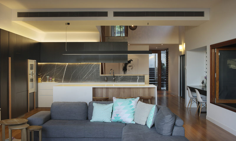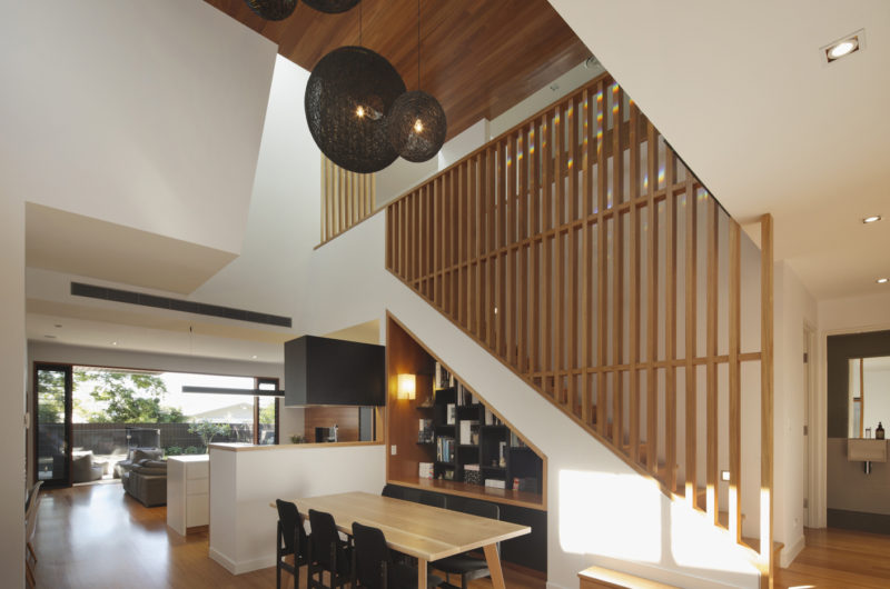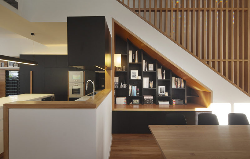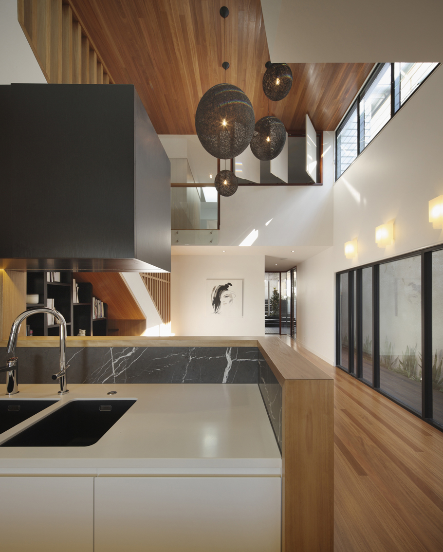 The warm and dynamic interior volumes are flooded with natural light. One of the strengths of this house consists in the craftsmanship with a timeless and seamless execution of joinery, cabinetry and attention to detail.